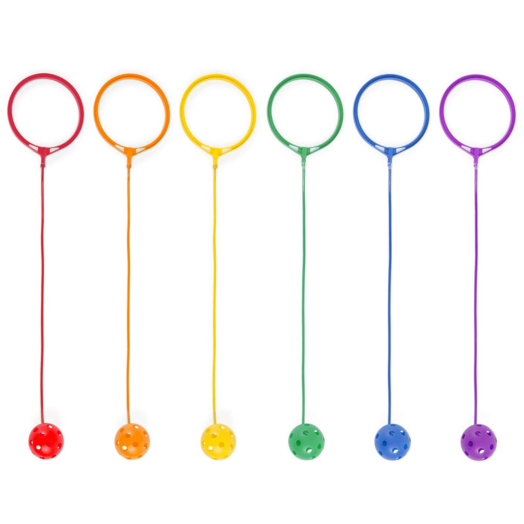 - Colorful Skipit Set: Our exclusive skip game set includes 6 swing balls in an assortment of bright, fun colors so that they can be played alone or competitively. This set includes red, orange, yellow, green, royal blue, and purple skip jump toys.