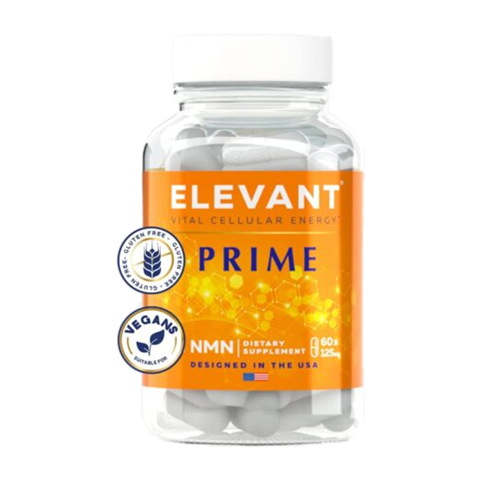 Elevant | Prime NMN | Energy All-Day Long with Nicotinamide Mononucleotide – Patented Formula – Energize Your Cells, Boost Your NAD+ Levels & Control Your Weight – 60 Counts, 125MG
