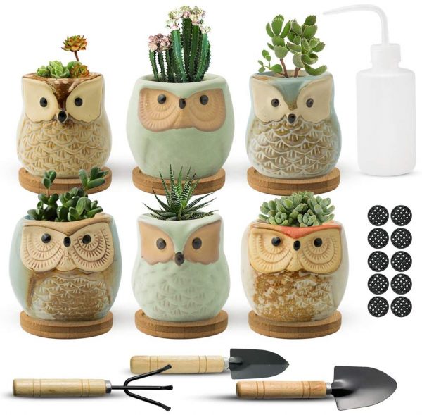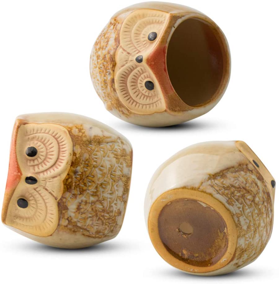 - 「PERFECT DESIGN」 – Handmade with high quality and durable ceramics baked in high temperatures. Cute owl design, all making this piece a stand out in your home decor. This plant pot is designed to grow petite plants or display artificial plants, like air plants, succulents, herbs, ferns, which adds a lively and fresh look to your space. In addition to this, this versatile planter can be used as a beautiful container for brushes/pens/keys and other knickknacks.